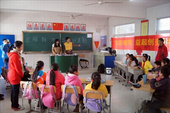 先锋社志愿者们赴支教基地合肥市梁墩回族小学开展“E路相伴,益起创美好” 环保知识竞赛。