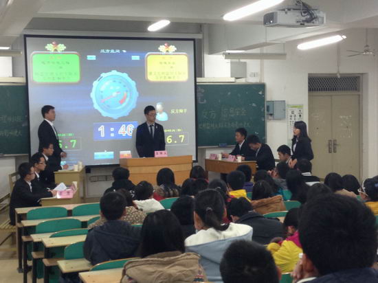 其他学院辩论队队长担任决赛的评委,与此同时,2012级辅导员朱玲利老师,2013级辅导员石楠老师以及各社团负责人出席本次辩论赛。