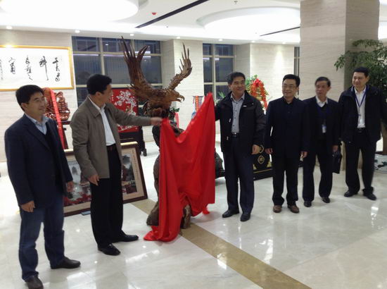 院长刘晓平率领学院班子成员前往工大高科公司新落成的研发大楼,祝贺公司十二周年生日,代表全院教职工向公司赠送了极具寓意的“大鹏展翅”根雕。