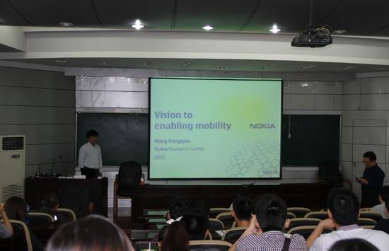 邀请,诺基亚北京研究院首席研究员汪孔桥博士在斛兵楼报告厅做了“Vision to enabling mobility”的学术报告。报告会由杨学志教授主持,蒋建国教授、汪萌教授以及众多师生参加了本次报告。