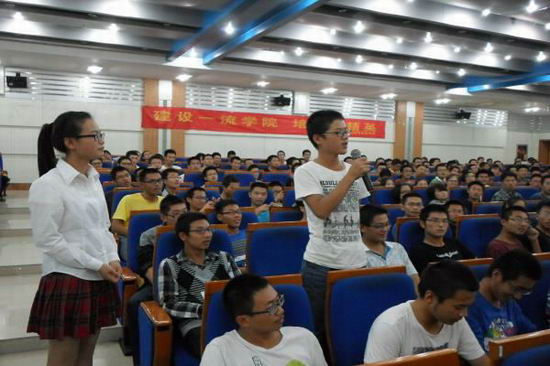 刘校长严谨睿智的治学态度和风趣幽默的大师风范,深深地感染了在场的每一名同学。同学们纷纷表示,将合理规划大学生涯,勇于攀登科技高峰,朝着“工程基础厚,工作作风实,创业能力强”的目标迈进。
