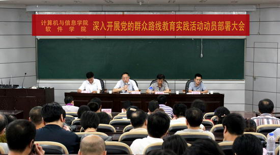 、软件学院深入开展学习实践活动进行了全部部署。蒋建国书记提出,要充分认识开展党的群众路线教育实践活动的重大意义,按照学校“坚持党的群众路线、办好人民满意教育”主题,从“明理念、优结构、活机制、加速度、上水平、提绩效”六个方面,认真领会“照镜子、正衣冠、洗洗澡、治治病”总体要求,结合实际制定和落实学习教育计划、采取灵活多样的学习方法、广泛听取意见建议、坚持边学边查边改和切实加强组织领导5个方面对做好教育实践活动第一环节工作进行要求。
