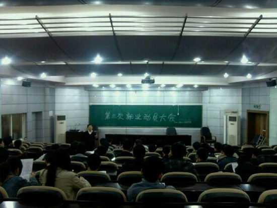 毕业班辅导员老师黄晨组织,分党委书记何庆领主讲。2013届未就业本科毕业生参加了此次动员大会。