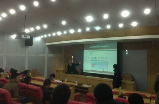 邀请,2013年3月26日上午,新加坡国立大学教授蔡达城在校学术会议中心报告厅做了题为“Live Social Observatory: A platform for social media research”的学术报告。报告会由蒋建国书记主持,杨学志副院长、信号所与软件所教师以及学院研究生、本科生参加了报告会。