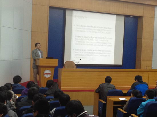 邀请,2013年3月27日上午,微软亚洲研究院副院长、首席研究员李世鹏博士在校学术会议中心报告厅做了题为“图像/视频编码学术前沿”的学术报告。报告会由蒋建国书记主持,信号所、通信所与软件所教师以及学院研究生、本科生百余人踊跃参加了此次学术报告。
