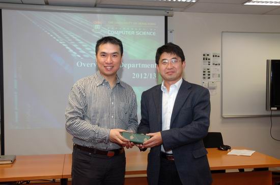 10级实验班班长代表班级作了“班级开展情况”的汇报。随后,双方互赠礼品,表达了希望今后能进一步加深合作的美好愿望。之后,我们参观了港大的本科生实验基地、计算机网格实验室及港大的文物博物馆。