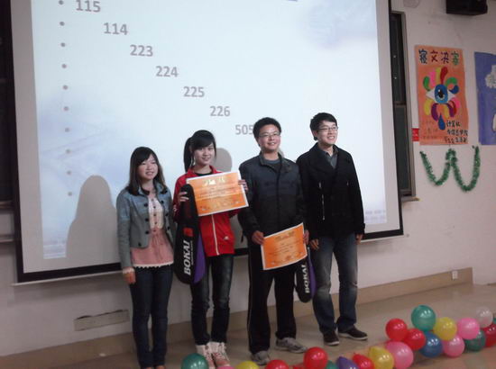此次比赛通过前期寝室检查得分和现场ppt答辩得分两个环节的综合产生最终结果,此次参赛所有寝室紧紧围绕着以营造专业特色为主题,以学风建设为核心的理念展示寝室文化,通过激烈的争夺,最终七号南楼505寝室夺得此次比赛的第一名。