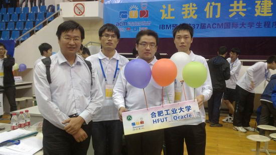 09级的朱辉同学,10级的唐爽同学和来自软件学院11级的郑弘灏同学组成的队伍参加了该次区域赛。比赛中,新老队员配合默契,顺利拿到了一枚铜牌。