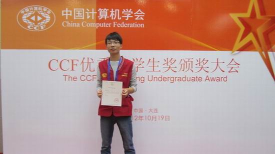 学生分会主席王琪和2010级本科生易鑫参加了本次大会,其中易鑫荣获了CCF颁发的“CCF优秀大学生奖”。