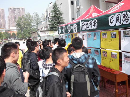 于翡翠湖校区一食堂广场举办了“计情瞬间”校运动会摄影展。