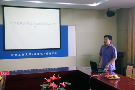 和美国Old Dominion University联合培养的在读博士季浩介绍了留学期间科研与教学工作情况和见闻,并交流了自己对在国外学习的一些感受。短短的一个半小时中,大家纷纷就各自感兴趣的话题对季浩博士在国外研究学习的经历进行了提问与交流,讲座后仍有许多同学与季浩博士生进行了深入的交谈。整场讲座除了让大家对季浩博士所做的研究方向有了大致的了解外,更让大家对国外的研究生活有了初步的了解。希望借助联合培养的桥梁,送更多优秀学子出国深造。