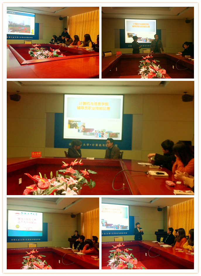 在逸夫楼408举行首届辅导员技能大赛。比赛分为“自我介绍与风采展示”、“情景案例分析”、“谈心谈话”三个环节。