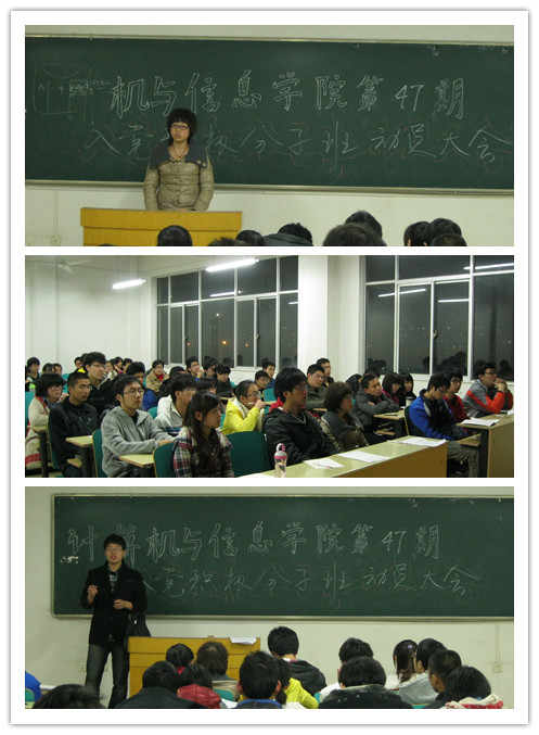 2011级辅导员陈方鑫老师、50名加入入党积极分子班的同学以及已毕业于第46期入党积极分子班的赵嘉敏同学参加了此次大会。