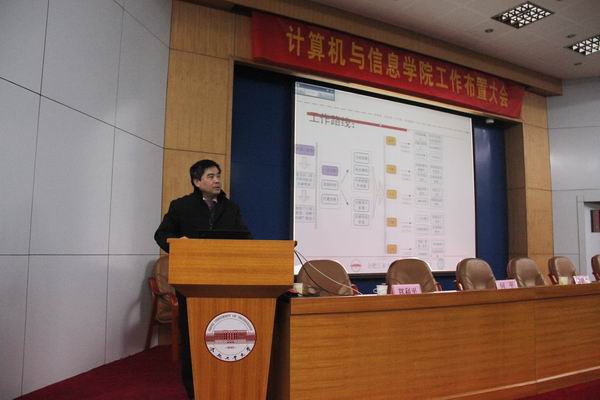 随后,刘晓平院长作新学期工作布置报告,明确了新学期的工作思路,并具体地从新一轮学科评估、教学改革、科研拓展等方面进行了部署,号召全体教职员工落实学院“十二五”发展目标,促进学院科学、和谐发展,为建设高水平研究型学院而奋斗。