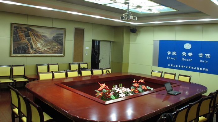 2012年3月15日,学院党政负责人在何平院长的陪同下,检查了逸夫楼408会议室的改造工作,装修一新的408会议室,以暖色调为主线,以“学院荣誉责任”为基调,风格庄重,配以壶口黄河的油画,静中取动,诱发室中客倍出灵感,促动信息人万千思绪,是一个学术研讨的好地方。