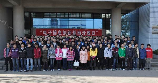 的大力支持,吸引了来自实验教改班、电气工程与自动化学院、计算机学院的200多名学生参观,所有参与该次活动的人员名单将在电子信息创新基地网站上公布。本次活动是作为12月7日电子新创新基地动员大会的后续活动,在动员大会上基地成员把要展示的作品的原理已经给同学们做过介绍,因此来参加开放日活动同学们都是带着问题、带着兴趣来的,这样才能做到有的放矢。