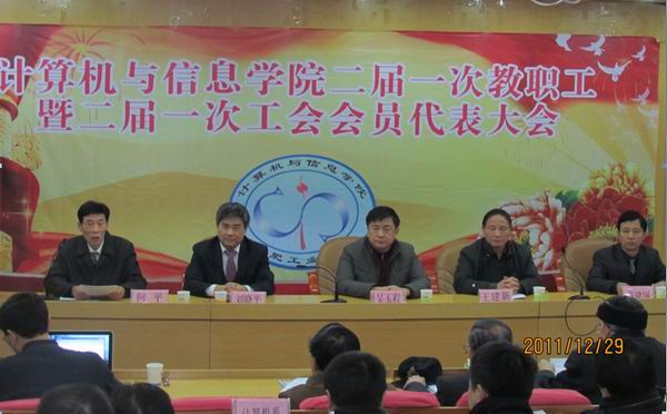 第二届一次教职工暨工会会员代表大会在校学术会议中心隆重召开。副校长吴玉程、校工会主席王建新出席会议;由学院各单位推选的两代会正式代表、列席代表和特邀代表共70余人齐聚一堂,共商学院发展大计。大会由副院长何平主持。