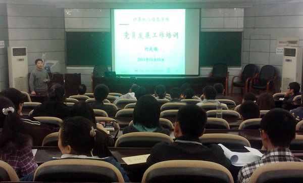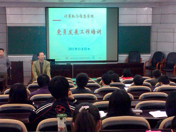报告厅召开了学生党员发展工作培训会。会议特别邀请了学校正处级调研员吴挺老师、学院党总支副书记何庆领老师为全院本科生和研究生学生党支部书记、组织委员、辅导员开展培训。