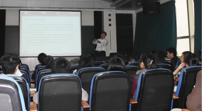邀请,2011年10月28日,国家海洋局第一海洋研究所孟俊敏研究员在逸夫楼1206报告厅做题为“SAR Applications in the China Sea(SAR在中国海洋的应用研究)”的报告。报告会由刘晓平院长主持,杨学志副院长,通信所丁志中教授、孙克文教授以及信号所、网安所和分布式所相关研究领域的教师和学生出席了报告会。