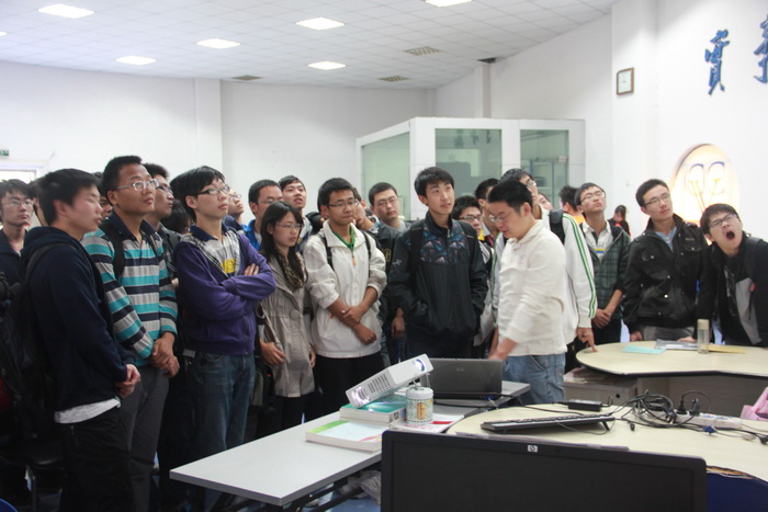 、机械与汽车工程学院、土木与水利工程学院等120多名来访者,VCC研究室师生向到来的客人们详细介绍了各种可视化技术和原理,展示了多种科学计算软件并交流了学习和生活经验,其中主题报告全面介绍VCC研究室各个方向的研究工作,研究生的详细解说,了解了VCC研究室的主被动立体设备和高性能计算环境,大家在现场亲身体验了VCC研究室、寰景科技和天源迪科开发的虚拟现实项目,过程中还不断交互,关于于学习、关于工程应用中的诸多问题,合肥微梦软件技术有限公司和合肥寰景信息技术有限公司合作向来访者展示了几种基于视觉传感器的游戏,天源迪科微博签名项目向参观者表达了实验室开放日的祝福。