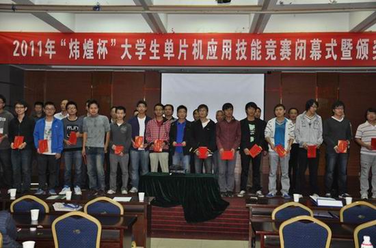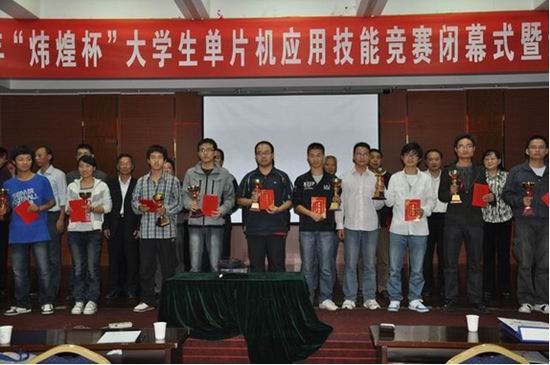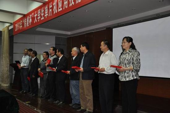 本次比赛设有个人奖、团体奖及最佳组织奖,竞赛形式为学生组队(两人一组),在规定时间内完成单片机电路焊接、程序编制、调试、下载测试等环节,对大学生单片机综合应用技能提高起到了很好的促进作用。10月23日下午的颁奖仪由安徽省高校计算机教育研究会大学生竞赛委员会主任王浩教授主持,安徽农业大学副校长程备久教授出席并作了重要讲话,安徽农业大学及安徽省高校计算机教育研究会领导为获奖的学生代表、教师代表颁奖。