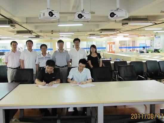 与无锡无线龙的萧总经理一同签署了共建教学实训基地协议,并为“TI无线龙亚洲大学计划联合挂牌实验室”和“无线龙校外实训基地”揭牌。签字仪式后,刘晓平院长视察了无锡无线龙的无线传感网教学装备,并表示学院重视对计算机专业学生实践能力的培养,希望打造校内教学与公司实训两位一体的实践培养模式。