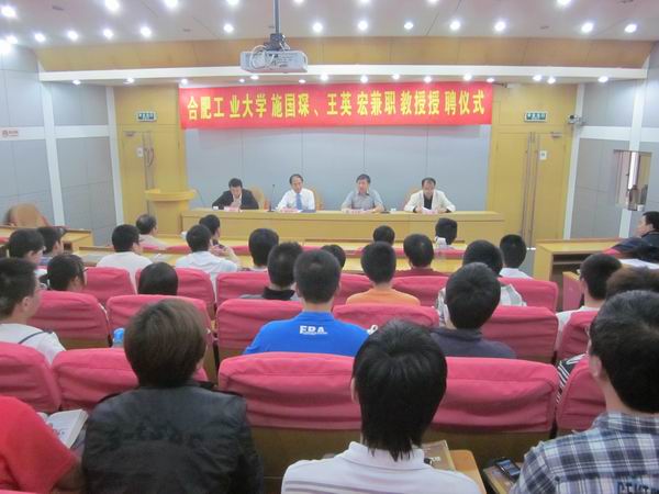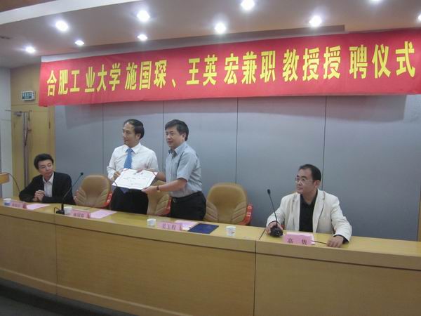 2011年9月23日上午,快看漫画 施国琛、王英宏兼职教授聘仪式在校学术活动中心二楼报告厅举行。副校长吴玉程、人才引进办公室主任孙祥出席仪式。