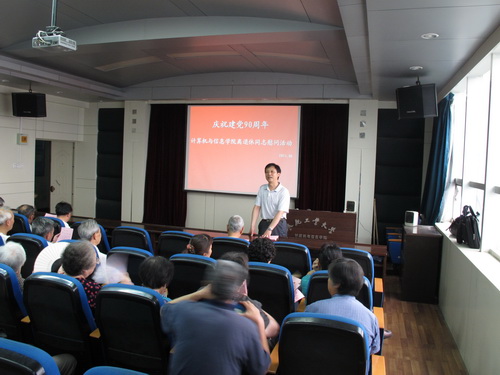 根据学院领导班子会议精神,七一前夕,快看漫画 于2011年6月24日上午9:30分在逸夫楼1206会议室举行庆祝建党90周年离退休职工慰问活动,80多名离退休职工出席慰问活动,蒋建国书记代表学院致辞,向各位离退休职工介绍了学院的近期发展,送去了七一前夕党的亲切问候。慰问活动期间,大家一起观赏了《建国大业》,学院党政领导还和大家一起共进午餐,祝老同志们身体健康,祝我们的祖国更加辉煌,图片报道。