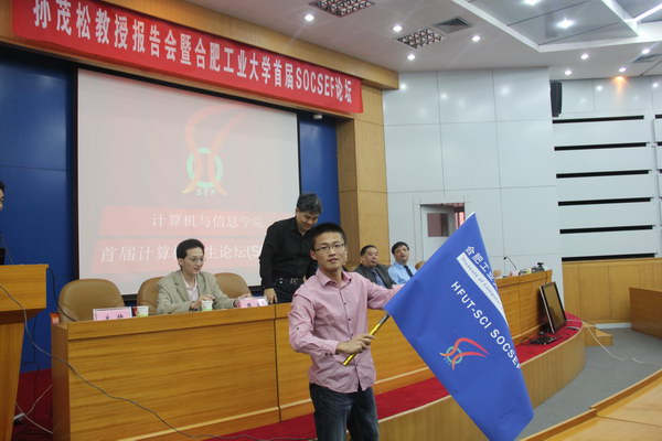 在简短的开幕式上,郑利平副院长介绍了论坛的主旨,王伟院长助理宣读了来自中国计算机学会青年计算机科技论坛(CCF YOCSEF)的贺信。然后进行了一场别开生面的SOCSEF授旗仪式,刘晓平院长将SOCSEF会旗授予计算机08级—1班。最后,洪天求副校长作了指示发言,他充分肯定了学院举行学生论坛的尝试,希望以此为契机,探索多层次的学生实践活动,以切实提高大学生的综合素质。