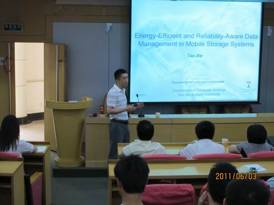 谢涛博士,美国圣地亚哥州立大学计算机科学系终身副教授。主要研究领域为高性能计算、存储系统、集群及网格计算、并行处理、分布式系统、实时嵌入式系统、动态资源管理及性能评估。主持过多项美国国家科学基金项目。在国际刊物和会议上发表论文约50余篇。 2010年获得了圣地亚哥州立大学科学学院杰出教授奖,2009年获得美国国家科学基金会早期科研生涯奖,2007年获得Langmuir 奖提名。