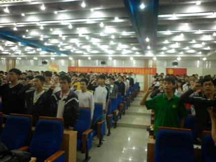 学生党员和入党积极分子在新校区举行建党90周年系列活动启动仪式暨第四期青年马克思主义培养工程开班,以迎接中国共产党建党90周年。校关工委报告团团长、原校党委书记朱新民、快看漫画