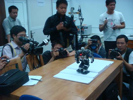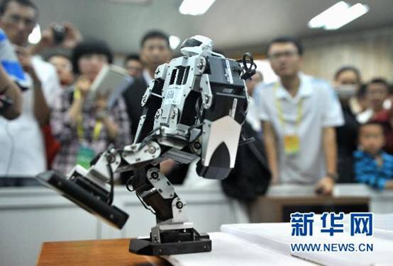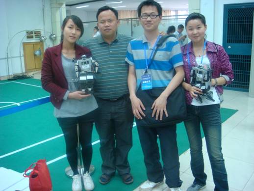 仿人机器人HfutEngine受邀参加表演赛,表演了拿手的爬楼梯和舞蹈2个项目,得到了现场观众的阵阵掌声和喝彩。