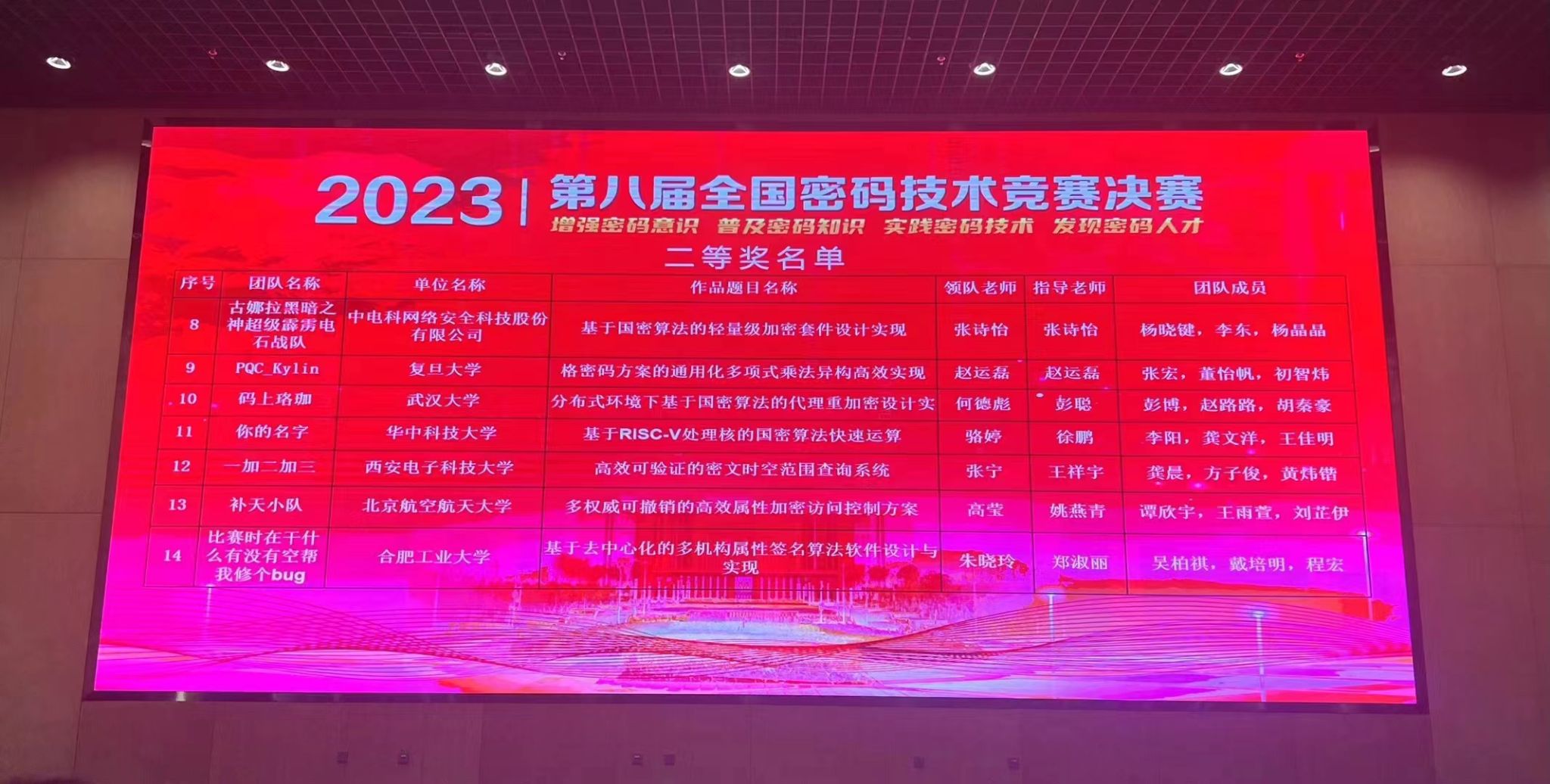 全国密码技术竞赛创办于2015年,其宗旨是“提高密码意识、普及密码知识、实践密码技术、发现密码人才”,是目前国内级别最高、影响力最大的密码行业技术大赛,吸引着越来越多的国内高校、职业院校和商密企业报名参赛。本届大赛由国家密码管理局指导,中国密码学会主办,中国密码学会教育与科普工作委员会、新疆大学联合承办。大赛涉及密码算法、密码芯片、密码协议、密码应用、密码分析等网络空间安全相关技术,主要考察选手综合运用密码知识和技术的能力,本届大赛吸引了来自全国各地的93家高校、科研机构和密码产业单位的488支队伍的1500余名师生和科技工作者参加,历时半年,146支队伍晋级决赛,其中19个团队获一等奖,35个团队获二等奖,87个团队获三等奖。