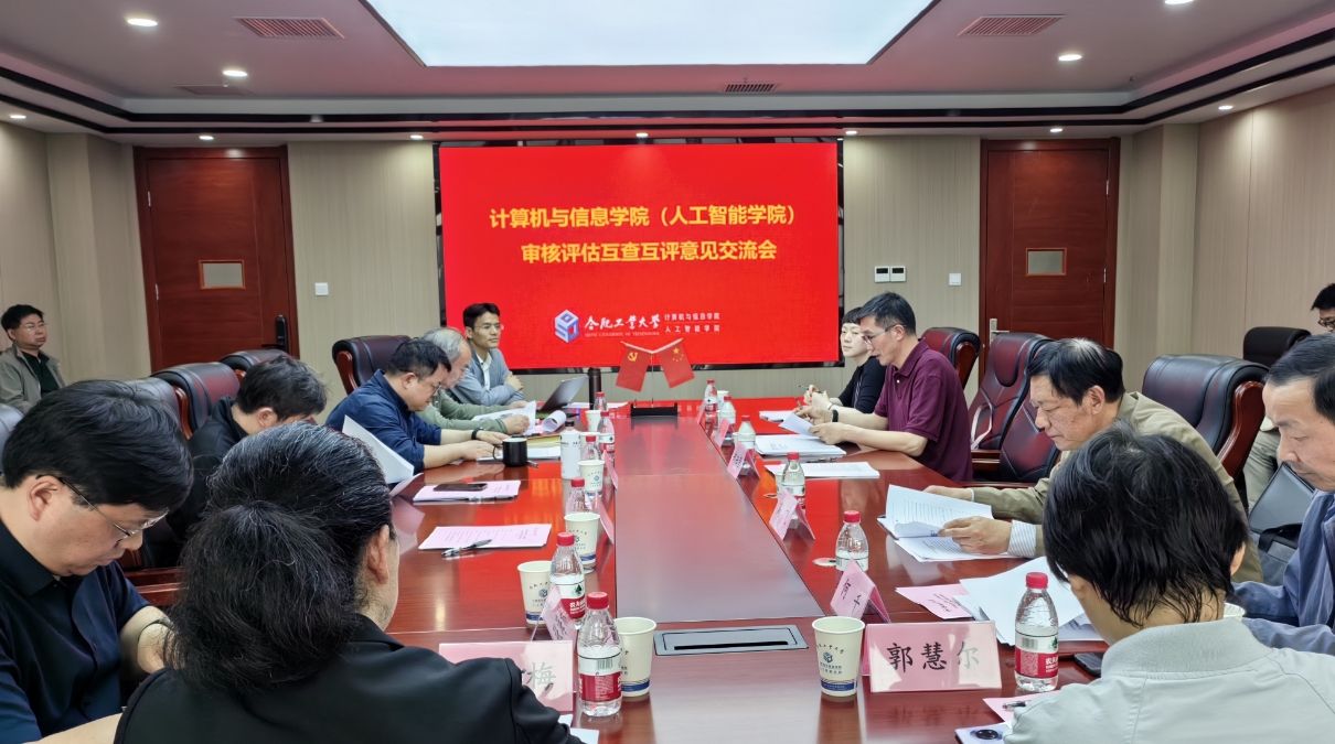 首先,学院教学副院长夏娜汇报了学院的评建改情况以及本科教育教学综合改革的各项举措和案例;随后,检查组组长李中军反馈了互查互评整体情况和检查组总体意见,在肯定学院教育教学特色的基础上,从创新实验班的开设、课程质量监控、AI课程建设的规范化等方面提出了重要的意见和建议;接着,校自评专家组组长胡学钢教授补充了考查意见,对自评报告中应按照专业认证标准进行阐述的内容给予了指导;最后,郑钰莹副处长对学院迎评自建工作,以及近年来的教育教学综合改革给予了高度评价,对下一步迎评工作进行了指导和部署。