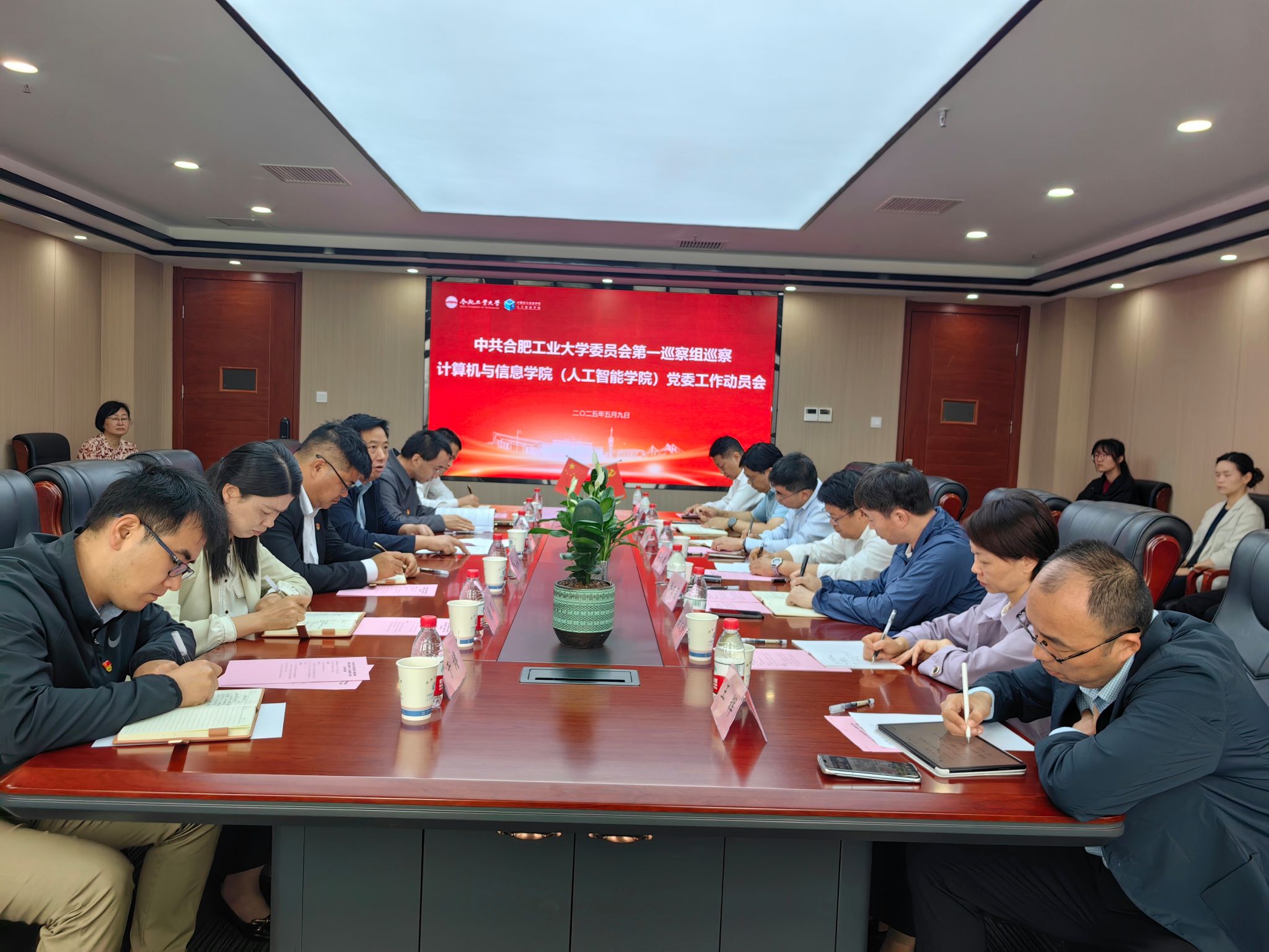 (人工智能学院)党委工作动员会在翡翠科教楼A座1106会议室召开。巡察组组长刘峰作动员讲话并提出工作要求。会议由学院院长洪日昌主持。