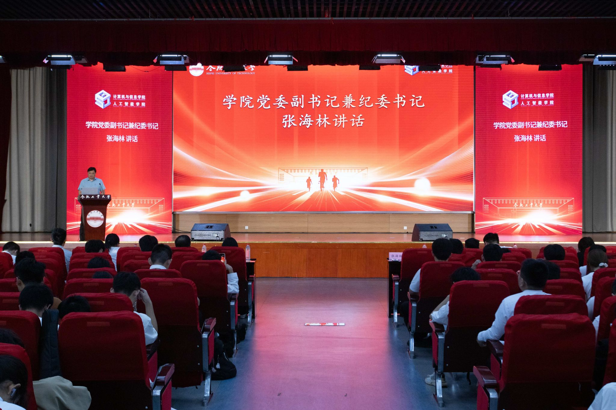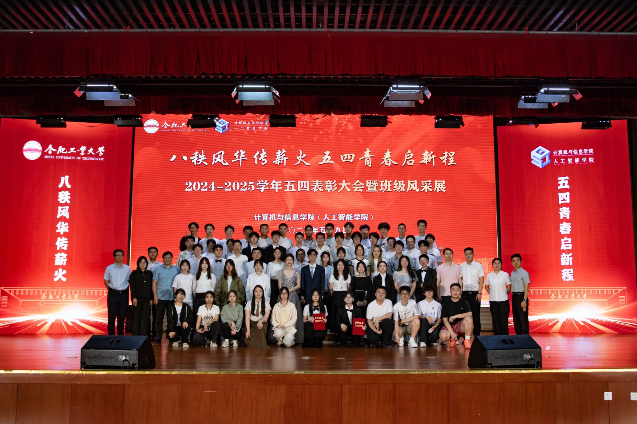 (人工智能学院)在翡翠湖校区科教楼二楼报告厅举行了“八秩风华传薪火,五四青春启新程”五四表彰大会暨班级风采展活动,表彰过去一年中涌现出的先进团支部与 先进个人。学院党委副书记兼纪委书记张海林、学院团委副书记叶璟、相关年级辅导以及2024级全体同学参加了活动。