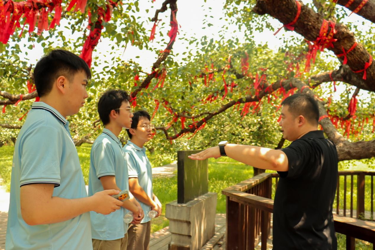 “三下乡”社会实践团队走进安徽省砀山县良梨镇展开深度调研,与良梨镇镇长唐琳成、团委书记杨博强深入交流,实地考察梨树王景区及鳌头观海观景台,通过“古树探秘-技艺体验-文创研发”三维实践,探索砀山梨产业与乡村振兴的融合发展路径。