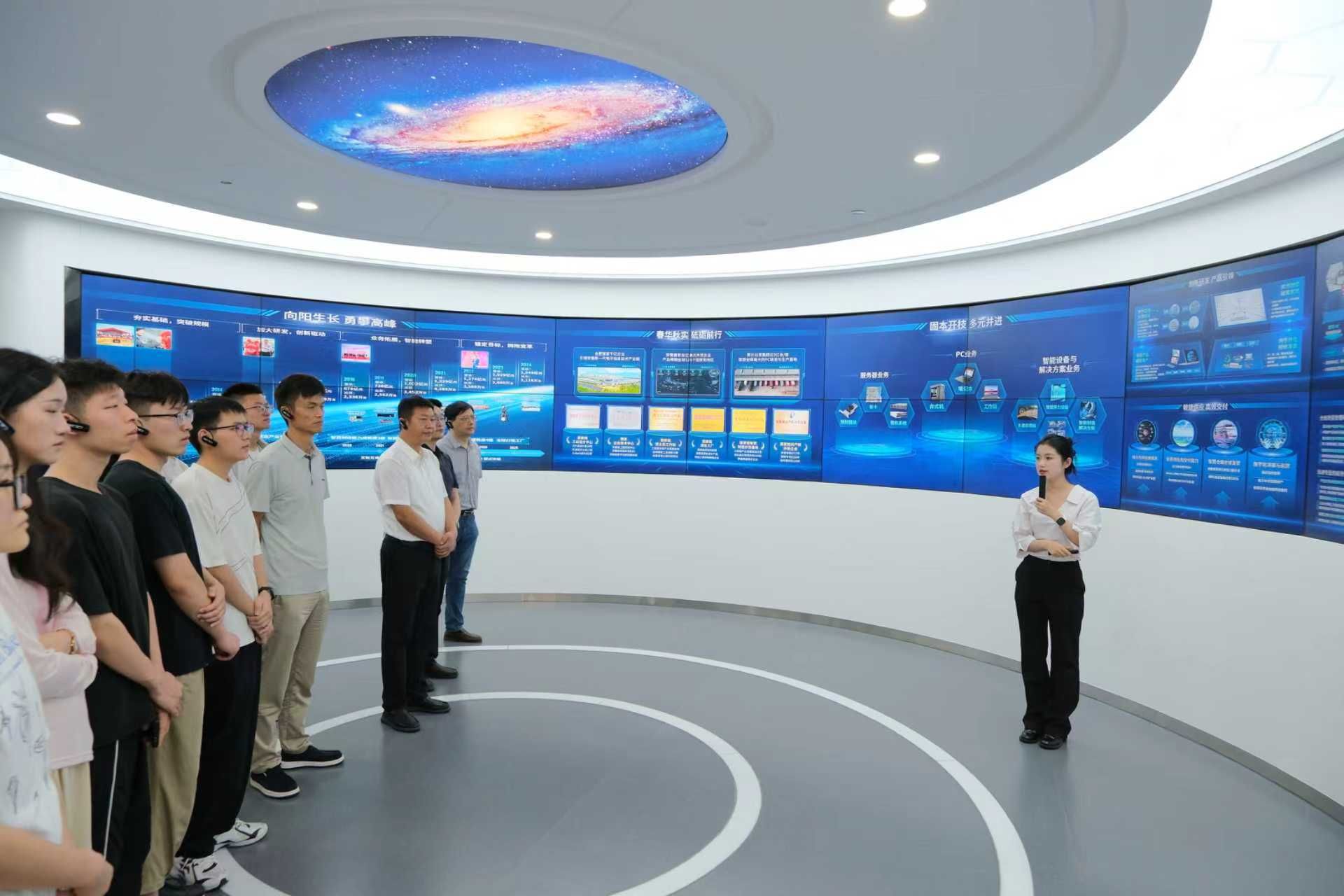 赋能心理健康,探索产研融合路径。团队首站走访合肥中聚源智能科技有限公司。在公司研发总监王飞带领下,师生参观了企业研发中心与产品展厅,深入了解其发展战略与核心业务。座谈交流中,王飞强调校企合作是贯通理论实践的关键桥梁,指出AI核心竞争力在于“科研基础与工程应用”的深度融合,并期待凝聚更多力量推动技术场景化落地。活动深化了师生对AI赋能垂直行业的认知。