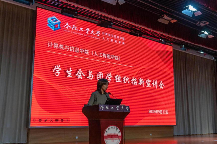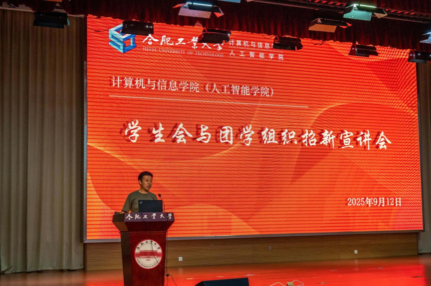 于科教楼A座二楼报告厅举办2025-2026学年学生会与团学组织招新宣讲会,旨在帮助2025级新生深入了解各学生组织。学院学生工作办公室相关老师,学生会及团学组织负责学生出席会议,2025级全体新生参加活动。