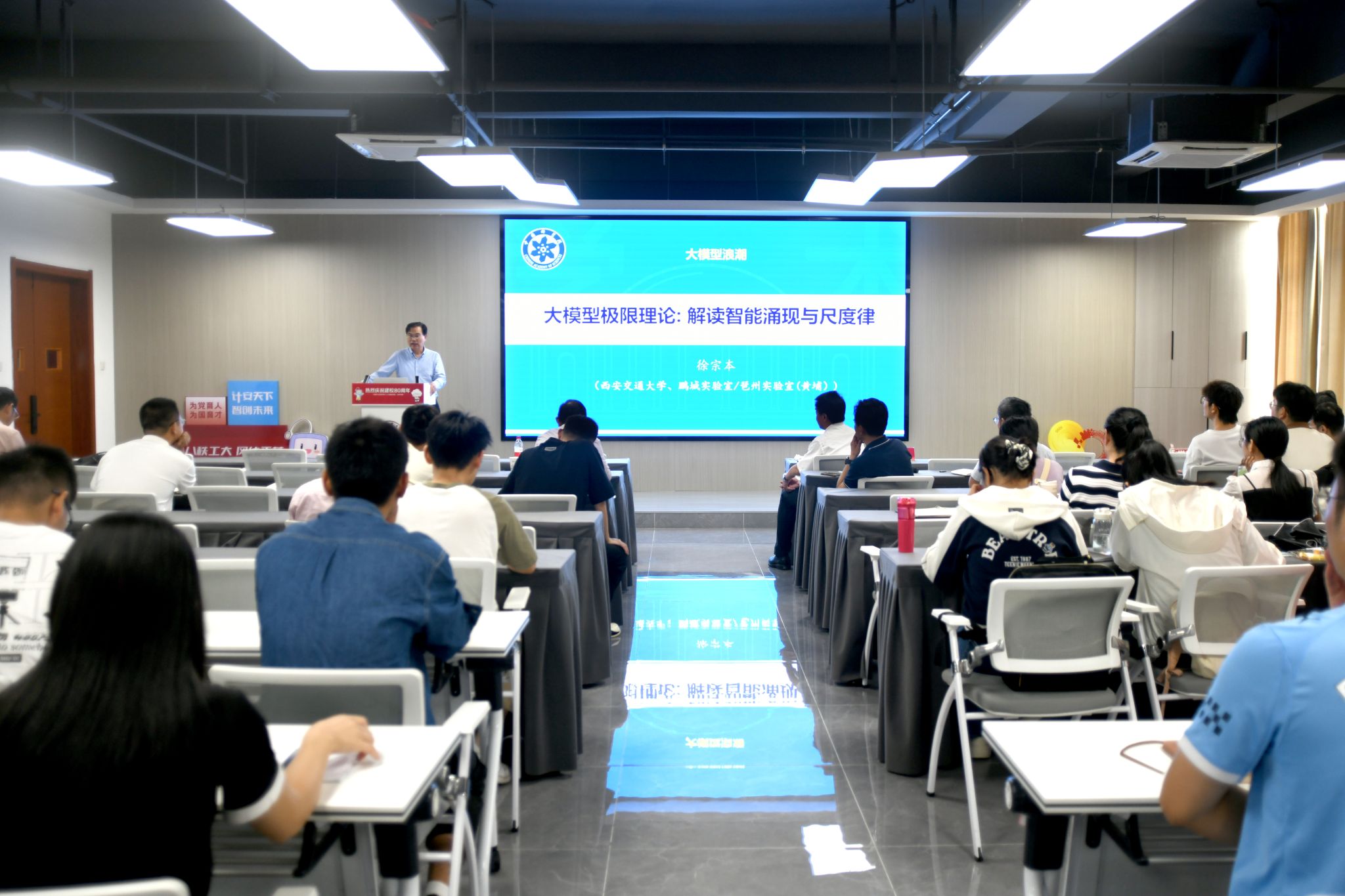 10月10日上午,学院在科教楼B501报告厅成功举办斛兵大讲堂系列学术报告。本次讲座荣幸邀请到中国科学院院士、西安交通大学徐宗本教授作为主讲嘉宾,作题为“大模型智能涌现的数学理论与未来前景”的学术报告。报告会由吴信东教授主持。作为庆祝建校80周年系列学术活动之一,本次讲座吸引了100余名师生参与,现场座无虚席。