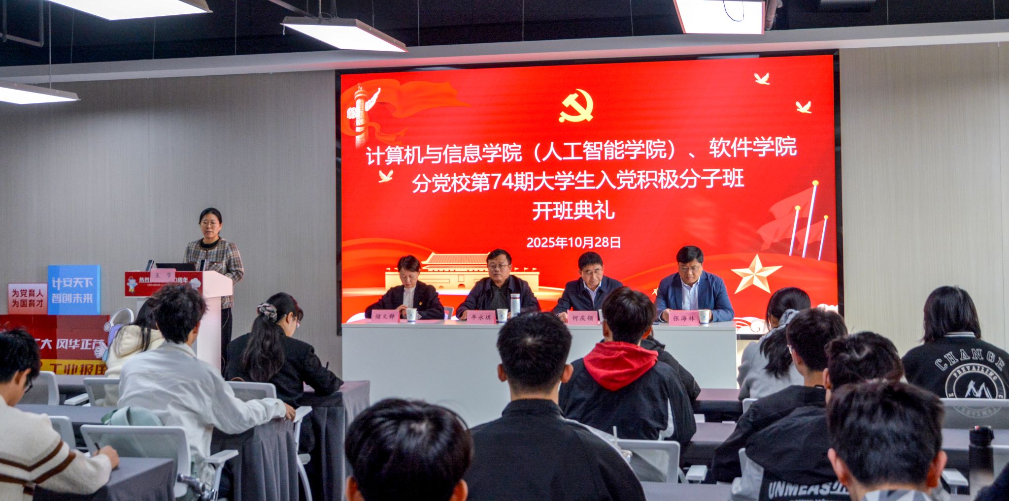 (人工智能学院)、软件学院分党校第74期大学生入党积极分子班开班典礼暨第一次专题党课在翡翠科教楼B座501室举行,学院党委、分党校相关负责同志及培训班全体学员参加典礼。