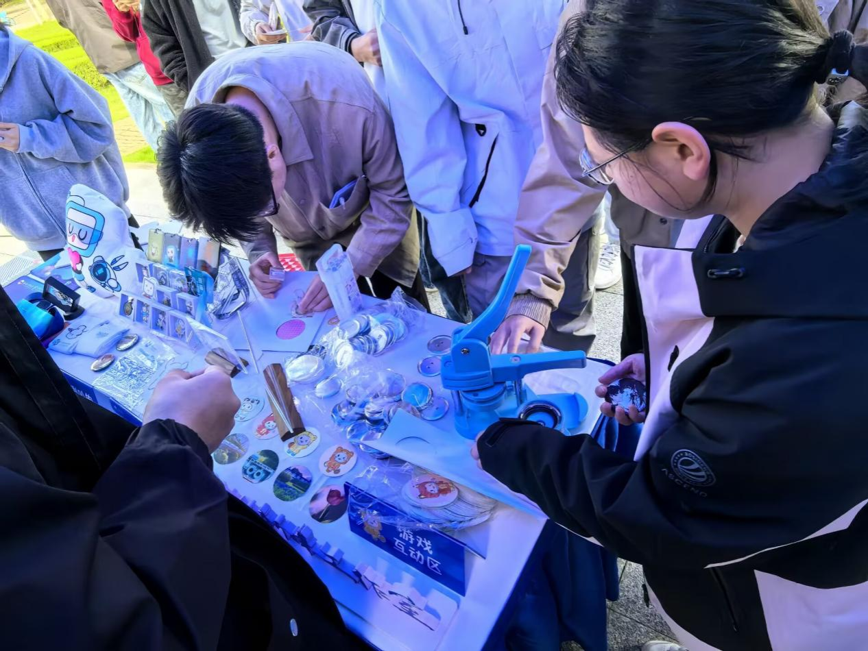 学子扎实的专业技能和创新思维,也传递出青年学子对生活之美、自然之趣与科技之力的深刻感悟。互动体验环节成为活动的一大亮点,其中 “周边 DIY” 区域更是人气爆棚,排起了长队。同学们在工作人员的专业指导下,充分发挥创意,从外形设计、数字建模到 3D 打印、裁剪组装,全程参与专属纪念品的制作过程。这种将虚拟创意转化为实体成果的沉浸式体验,不仅让同学们直观感受了数字技术与人文创意的融合魅力,更在实践中提升了创新能力和动手能力,赢得了师生们的广泛好评。