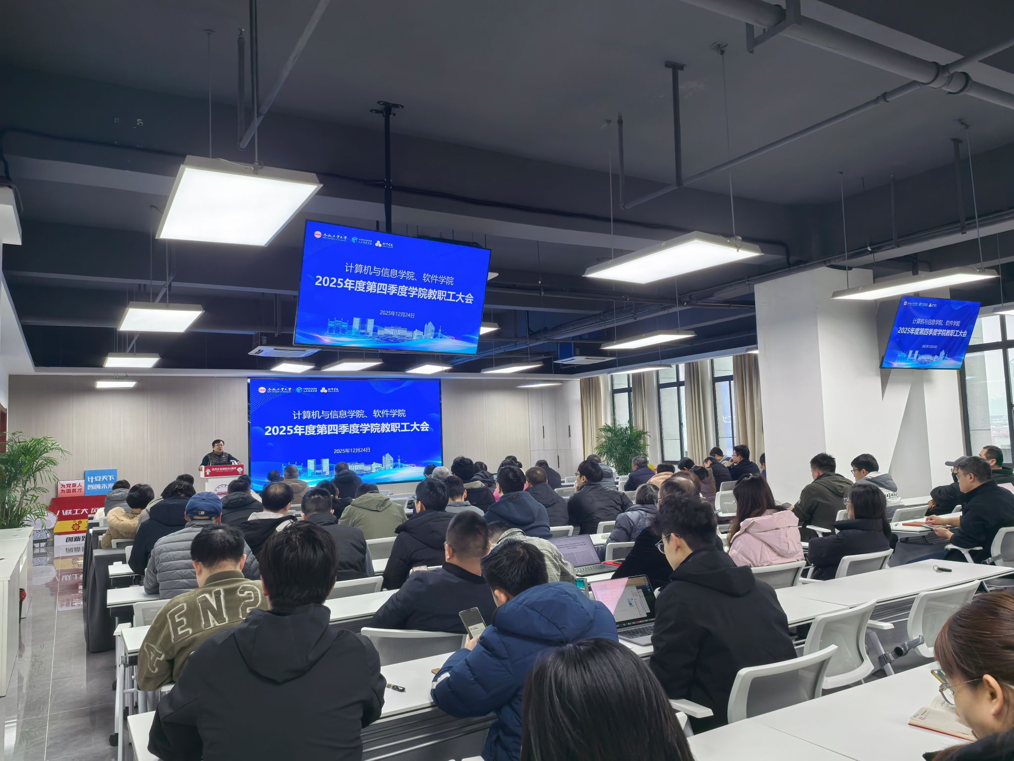 12月24日下午,学院在科教楼B501报告厅召开2025年第四季度全体教职工大会。院领导班子及全体教职工参加会议,会议由院党委书记年永琪主持并部署重点工作。