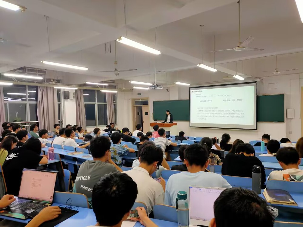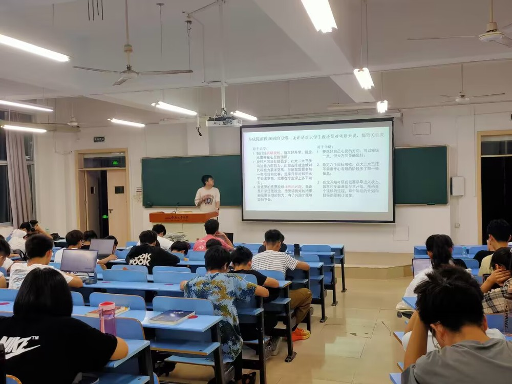 Next, student Xiaoyan Xu from Class 3 of the 2019 Electronic Information Engineering major shared her relevant experience in preparing for the postgraduate entrance examination. She emphasized the importance of fully understanding the information of the applied universities, setting clear goals, implementing study plans, cultivating good study habits, and maintaining a stable mindset. Zihan Qiu from Class 2 of the 2019 Electronic Information Engineering major pointed out the importance of developing the habit of planning ahead, which is crucial for both university life and preparing for the postgraduate entrance examination. Freshmen can make long-term plans and set expectations for further education, employment, and studying abroad. Choosing employment requires improving coding skills and participating in project competitions, while choosing further education requires more effort in professional courses. They also shared their insights and reflections on selecting subject competitions.
