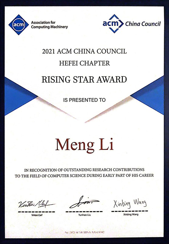 To commend the research achievements of young scholars in the field of computer science in China and further promote the development and progress of young scholars in the field of scientific research, the ACM China Council established the ACM China Rising Star Award in 2014. Each year, 1-2 young scholars who have demonstrated outstanding research potential in the field of computer science are selected as winners. The selection of this award is based on the impact of the new ideas, models, and systems created by the candidates in the field of computer and/or communication systems. The research results can be theoretical, empirical, or experimental. Depth and influence are important factors considered in the award. The winners will also receive a reward of 10,000 RMB. The award ceremony will be held during the ACM China Turing Conference in the following year. The ACM Hefei Branch is a secondary branch established by the ACM China Council in mainland China with the approval of the ACM headquarters, dedicated to providing quality services for computer professionals in Anhui Province and surrounding areas.