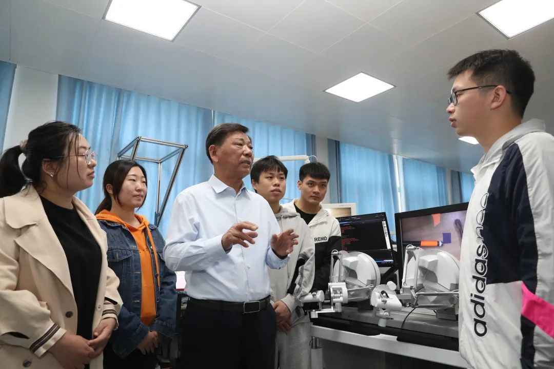 漫步校园,杨善林院士与年轻教师讨论科研攻关项目。